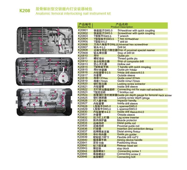 Surligner: | Kit de verrouillage d'instrument chirurgical de clou,Clou de verrouillage fémoral anatomique,Clou de verrouillage fémoral de la CE |